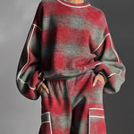 Czerwono-szary komplet streetwear w kratę z kontrastową lamówką