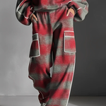 Ten czerwono-szary komplet w kratę to odważna propozycja w stylu streetwear z modowym pazurem. Kontrastowe lamówki i luźny krój tworzą mocny, nowoczesny look, który przyciąga uwagę i nadaje stylizacji charakteru bez przesady.