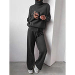 Dzianinowy komplet z golfem i szerokimi spodniami