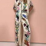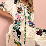 Elegancki komplet satynowy z artystycznym printem