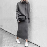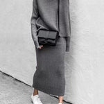 Dzianinowy komplet midi z golfem i spódnicą – Agnazio
