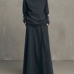Komplet minimalistyczny z wysokim kołnierzem i spódnicą maxi
