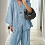 Komplet Soft Linen z Narzutką i Szerokimi Spodniami