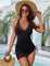 Ten kostium kąpielowy typu sukienka łączy modelujący efekt z komfortem na cały dzień. Wbudowana kontrola brzucha oraz boczne marszczenie subtelnie wygładzają sylwetkę, a dekolt V z transparentną wstawką z siateczki dodaje kobiecej elegancji bez przesady.