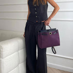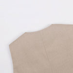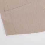 Ten lniany komplet to definicja letniej swobody i ponadczasowej elegancji. Kamizelka z dekoltem V i guzikami subtelnie podkreśla górę sylwetki, a szerokie, długie spodnie nadają lekkości i naturalnego ruchu przy każdym kroku.