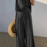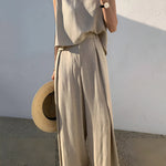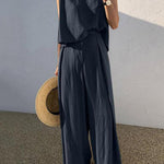 Minimalistyczny komplet z topem bez rękawów i szerokimi spodniami