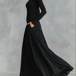 Komfort, który wygląda luksusowo: miękka, oddychająca tkanina „płynie” na ciele, nie gniecie się nadmiernie i pięknie układa się w ruchu, a długi fason do ziemi nadaje sylwetce posągowego wyglądu.