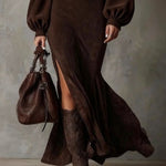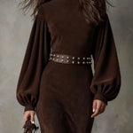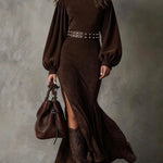 Retro latarnia długa sukienka z długim rękawem i półwysokim kołnierzem – Agnazio