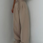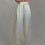 Spodnie z wysokim stanem i szerokimi nogawkami łączą elegancję z codziennym komfortem. Lekka, oddychająca tkanina oraz ozdobny pasek podkreślają sylwetkę i zapewniają swobodę noszenia przez cały dzień.