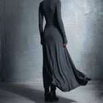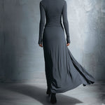 Zwiewna elegancja maxi: miękki, elastyczny materiał pięknie opada i porusza się przy każdym kroku, a głęboki szary kolor dodaje ponadczasowej klasy.