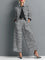 Ten elegancki, nowoczesny zestaw składa się z krótkiej, jednorzędowej marynarki oraz spodni z wysokim stanem i szeroką nogawką. Wykonany z wysokiej jakości mieszanki tweedu i bawełny, łączy ponadczasową klasykę z współczesnym charakterem — idealny do pracy, na spotkania i stylowe wyjścia.