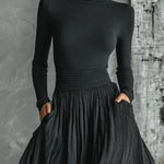 Zestaw plisowanej spódnicy i czarnej dopasowanej koszulki z długim rękawem