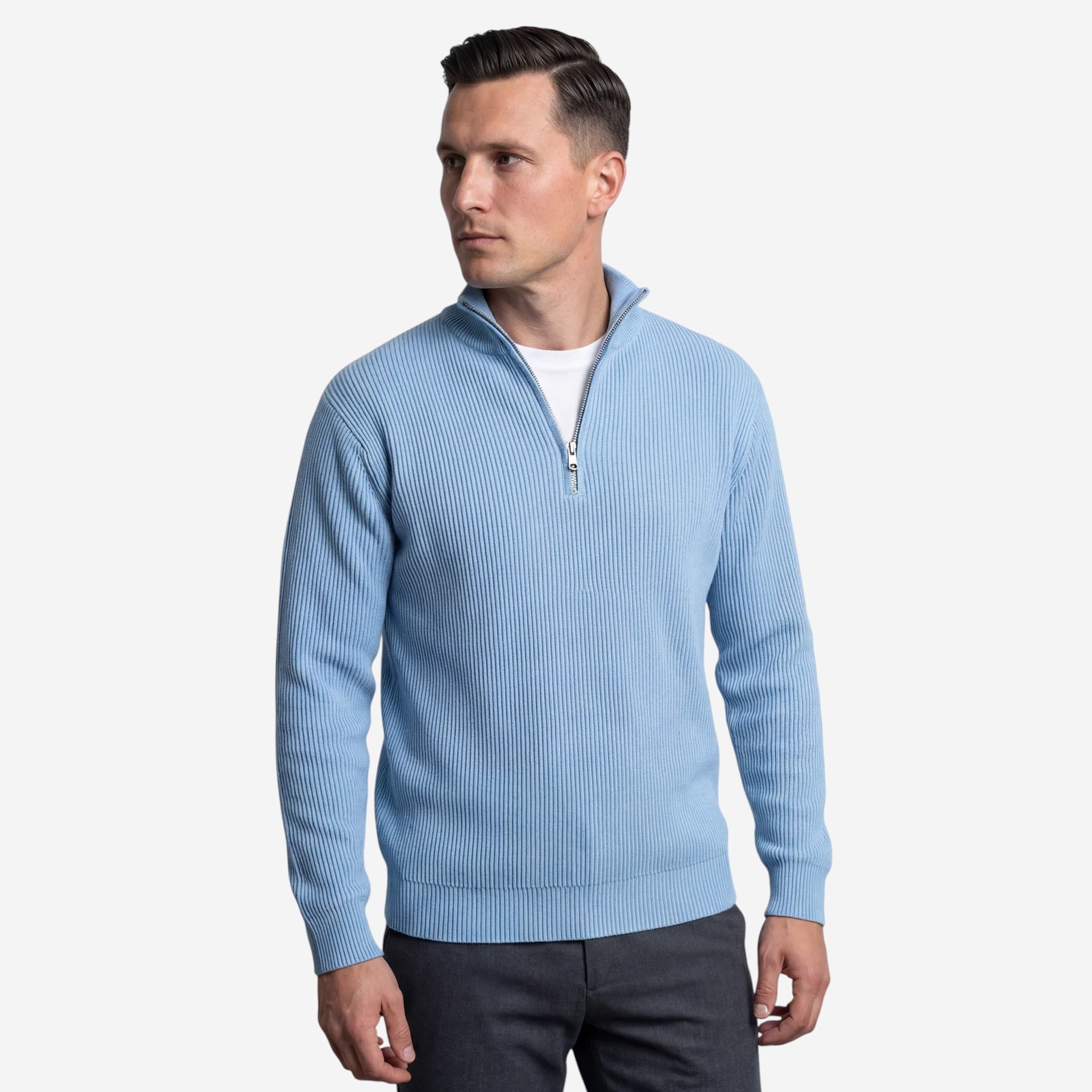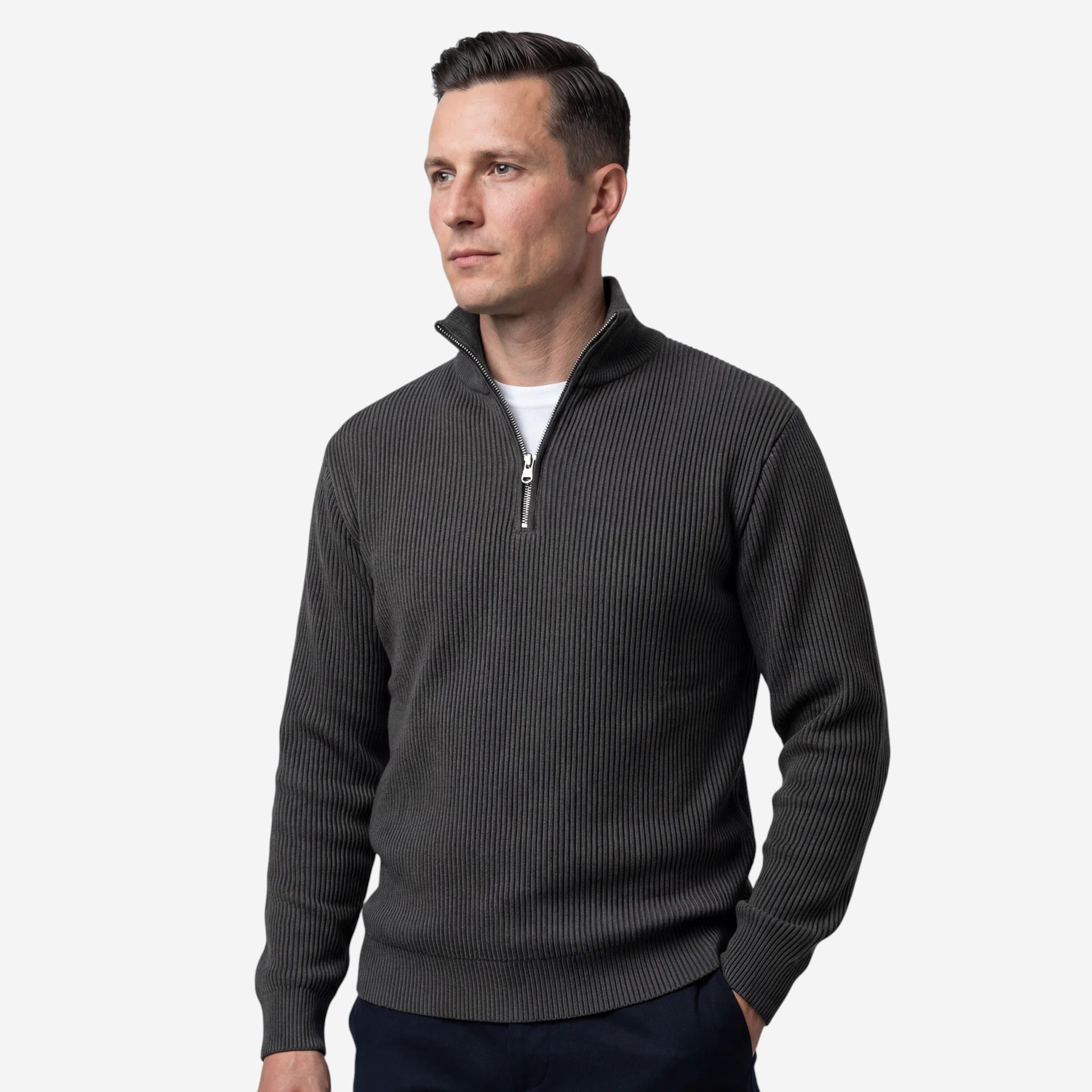 Delikatny, lecz zdecydowany pulower na chłodniejsze dni. Teksturowana dzianina i zamek tworzą nowoczesny, minimalistyczny efekt, a swobodny fason ubiera bez zbędnej objętości. Idealny na solo lub jako warstwa, w stylizacjach miejskich, utrzymuje czysty, uporządkowany look przez długi czas.